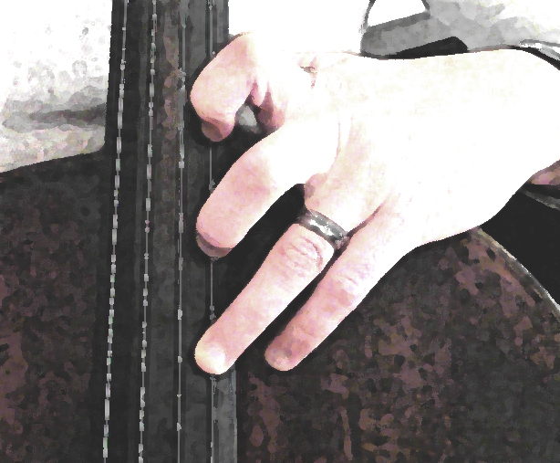 When we consider the position of the left arm beyond fourth position, it is easy to understand why we stop using using the fourth finger. With the arm extended forward, even when the fingers remain at roughly a ninety degree angle to the strings, it is difficult to use the fourth finger without introducing a significant level of strain to the forearm. For this reason, and the fact that the intervals are physically closer together, we adopt the three finger system form fifth position onwards.
