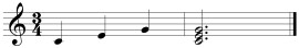 Before we look at the structure of minor keys and their scales, it is vital that we hear how they differ in sound. Major keys are thought of as having a happy sound while minor keys sound sad. Although this is a very simplistic and subjective description, it’s a good start. The following two sound bites are the tonic¹ triads² of C major and C minor. The C major triad sounds brighter (“happy”), while the c minor triad sounds darker (“sad”).