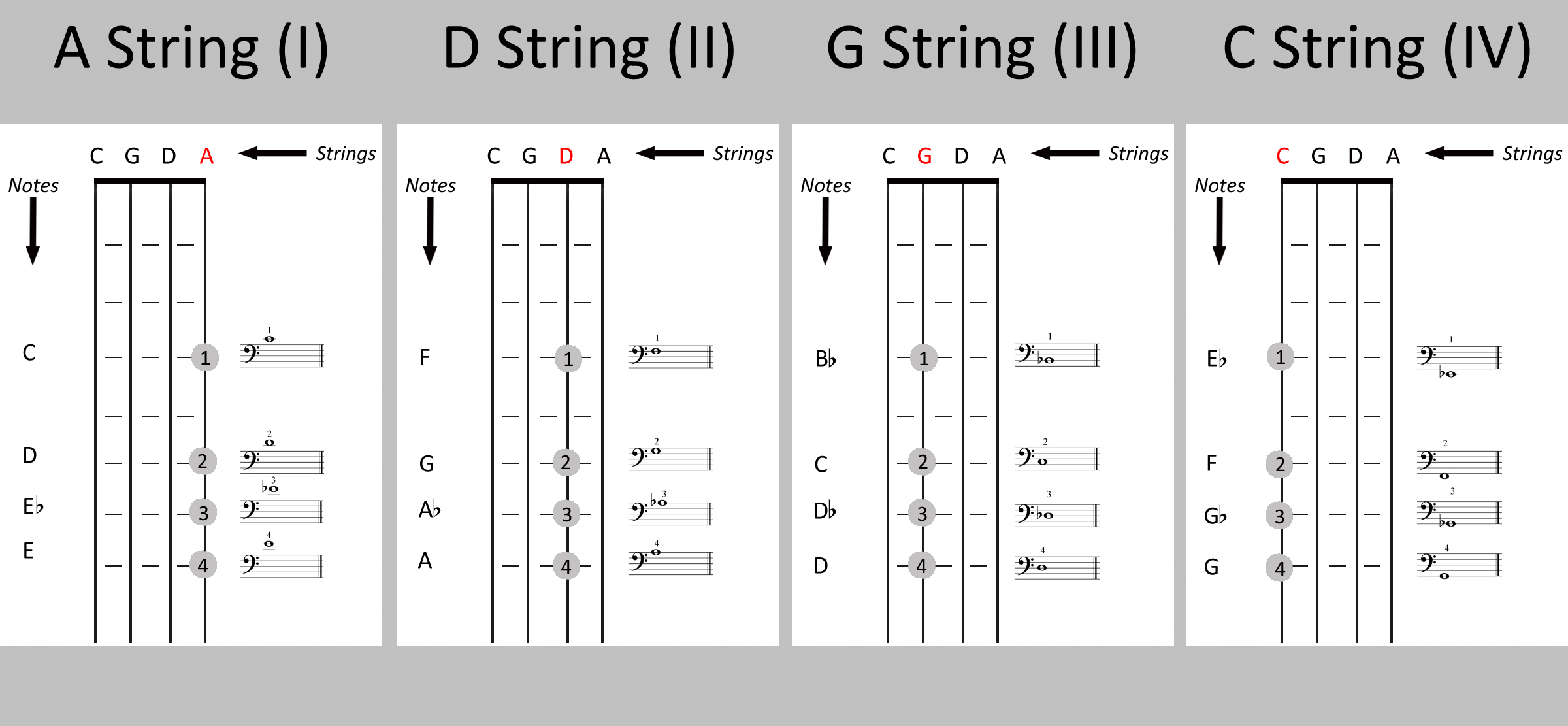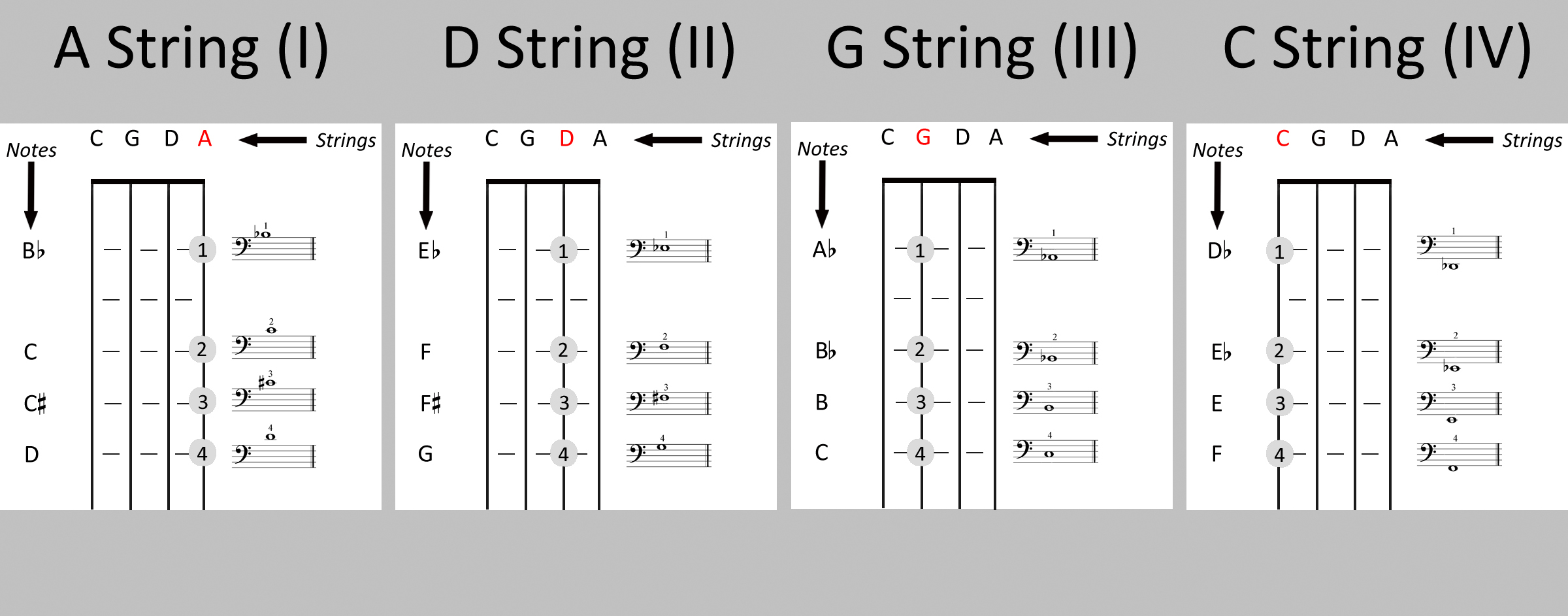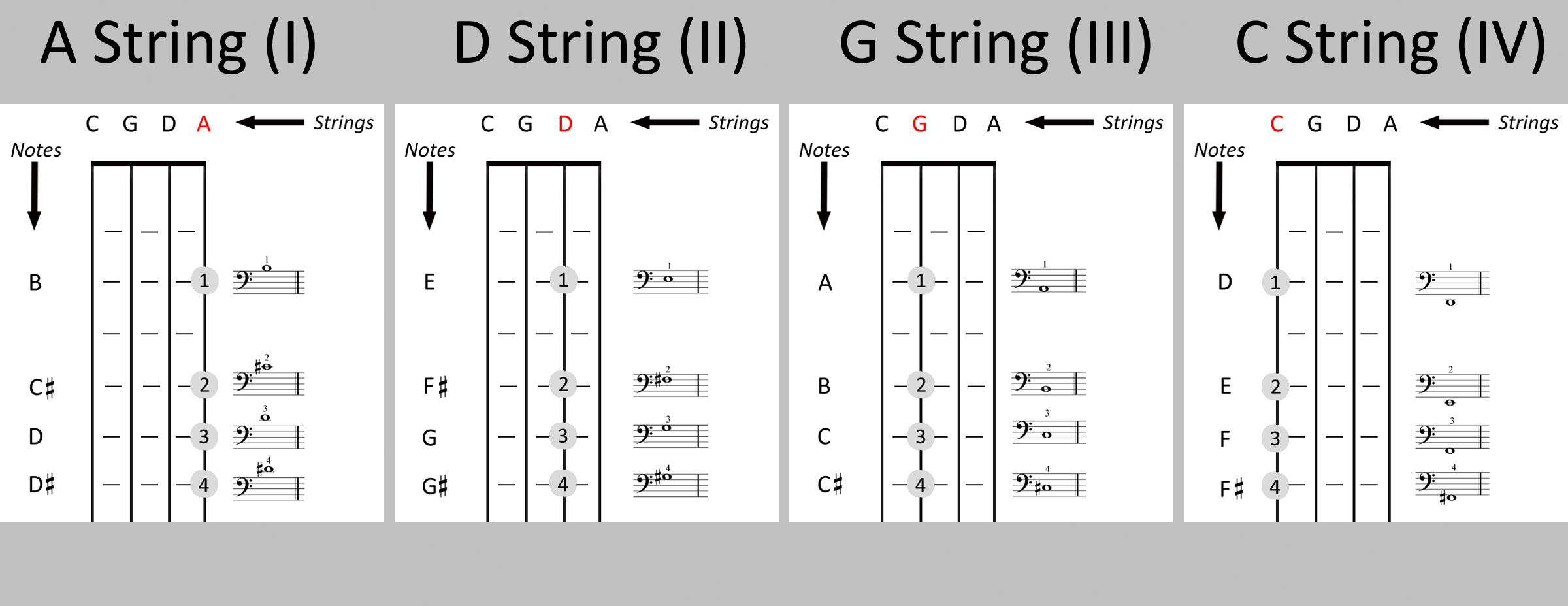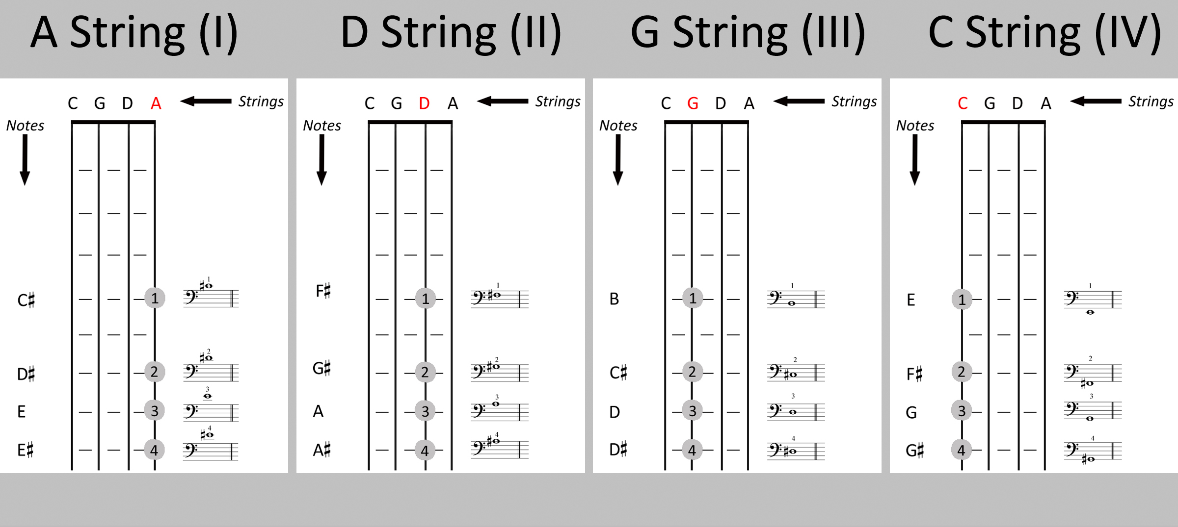 1.3 First position on the C string and fourth position on the G string